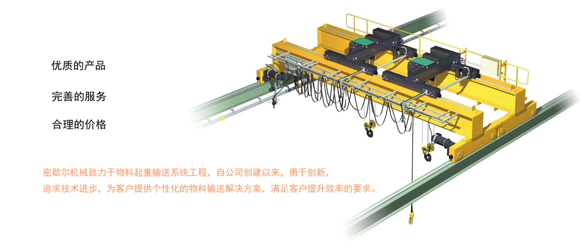 密歇爾起重機械(杭州)有限公司,作為專業(yè)的電動葫蘆和起重機及物料起重輸送系統(tǒng)設計、制造和銷售綜合服務商,自公司創(chuàng)建以來,勇于創(chuàng)新,追求技術進步,并依托我們的技術研發(fā)中心,現已成為國內起重機械行業(yè)的新興優(yōu)秀企業(yè)。